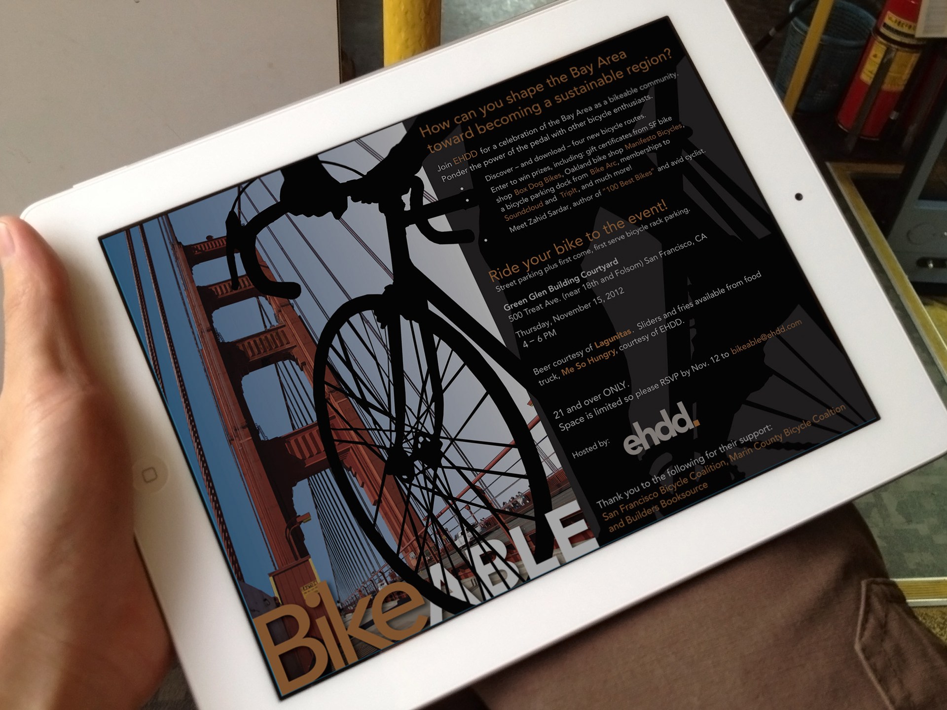Marketing materials for EHDD's event BIKEable that promotes a more eco-friendly way to commute around the San Francisco Bay Area.